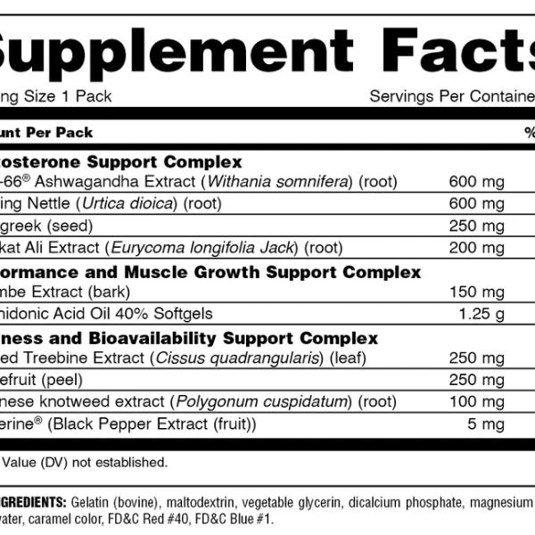 • Eleva la producción endógena de testosterona, controla los niveles de cortisol y gestiona el equilibrio estrogénico. •