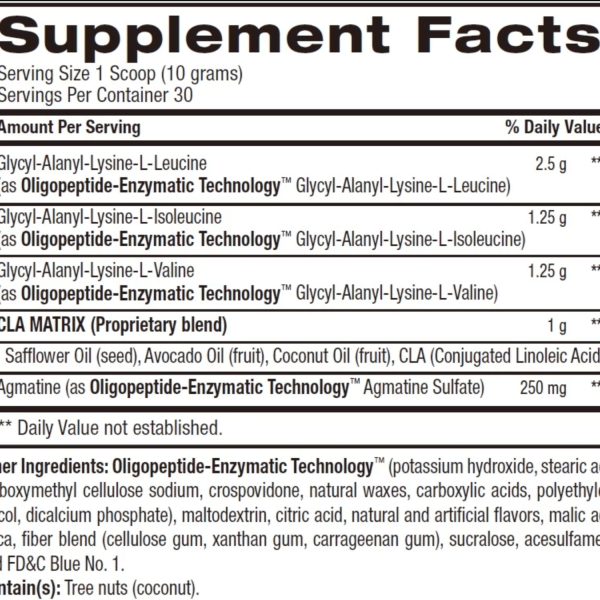 Best BCAAs de BPi te aporta en cada uno de sus 30 servicios: 5g de BCAAs, 1g de CLA y 250mg de Agmatina.