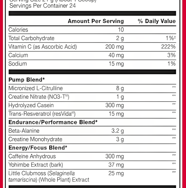 • Fuerza explosiva, vascularización, energía intensa y un mejor rendimiento durante su entrenamiento. •