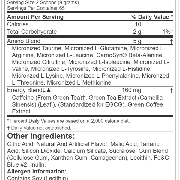 Amino Energy de Optimum Nutrition te proporciona en cada uno de sus 65 servicios: 5g de aminoácidos de forma libre y 100mg de cafeína.