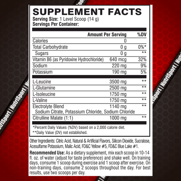 BCAAs XTEND de Scivation te proporciona en cada uno de sus 90 servicios: 7g de BCAAs, 2.5g de Glutamina, 1.14g de su complejo de electrolitos y 1g de Citrulina.