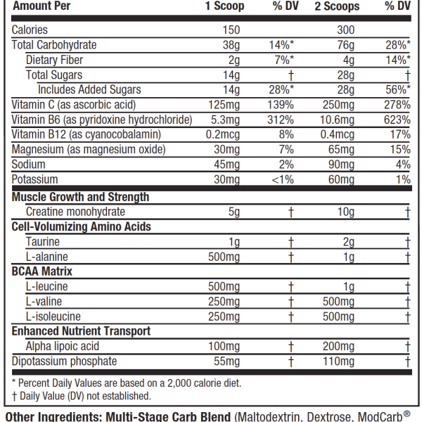 CellTech de MuscleTech te proporciona en cada uno de sus 27 servicios: 2.5g de Creatina Monohidrata, 2.5g de Citrato de Creatina, 1g de Taurina y 1g de BCAAs.