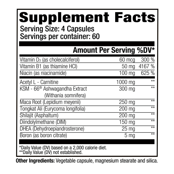 • Aumenta tus niveles de Testosterona, mejora tu rendimiento sexual, reduce el cortisol. •