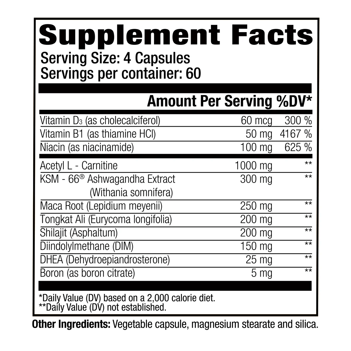 Shilajit (con Ácido Fúlvico): Un potente mineral natural que revitaliza la libido, mejora la producción de energía celular y apoya la producción endógena de testosterona.