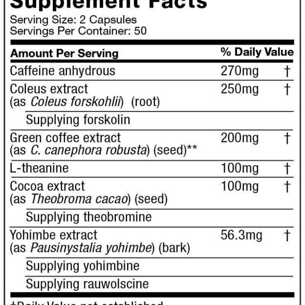 • Energía intensa, perdida de peso, mejora el metabolismo, enfoque/concentración. •