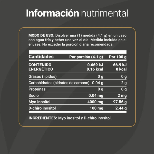 Primero, Myo-Inositol (4,000mg): Es la forma más abundante de inositol en el cuerpo, actúa como segundo mensajero en las células, facilitando la señalización de la insulina lo que favorece la captación de glucosa en el músculo, también se asocia con la mejora del perfil lipídico, la salud ovárica en mujeres y la función de los neurotransmisores.