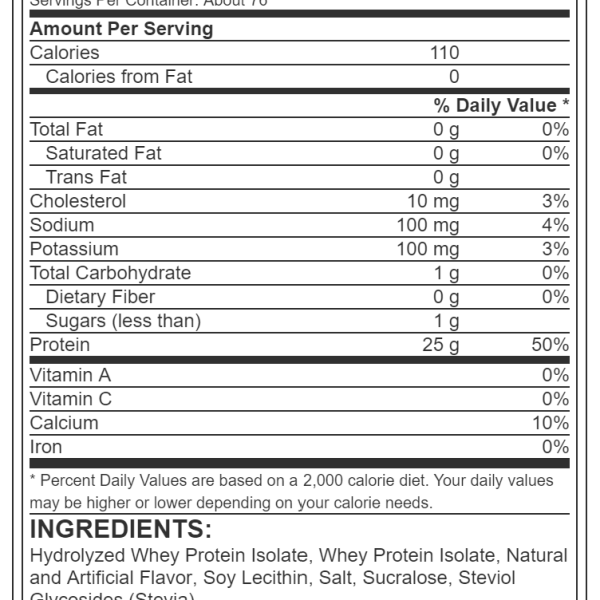 ISO 100 es una Whey Protein Hydrolyzed de Dymatize, cada uno de sus 76 servicios te proporcionan: 25g de Proteína, 5.5g de BCAAs, 4.4g de Glutamina, 2g de Carbohidratos, 1g de Grasa y 0 Lactosa.