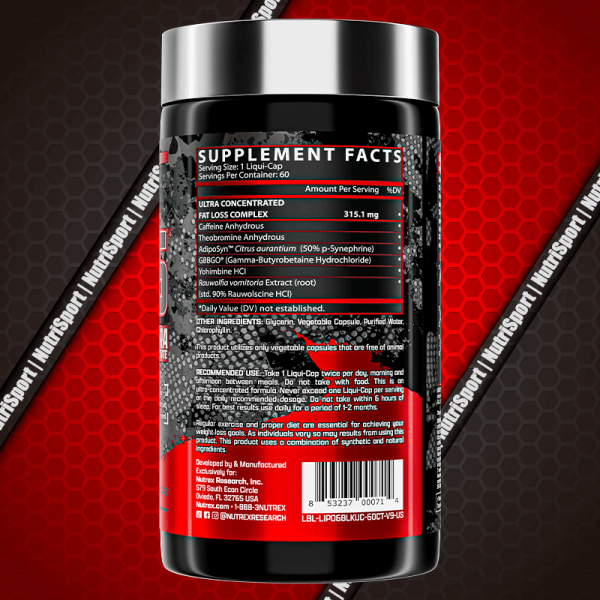 Este termogénico es ideal para la quema de grasa y la aceleración metabólica gracias a su formula ultra concentrada y la rápida asimilación de sus cápsulas. Contiene cafeína que aumentara tus niveles de energía y tu rendimiento físico. Lipo 6 Ultra Concentrate es un aliado de tu alimentación que favorece naturalmente la capacidad de tu organismo para reducir las grasas, reducir tu apetito y eliminar la grasa localizada.