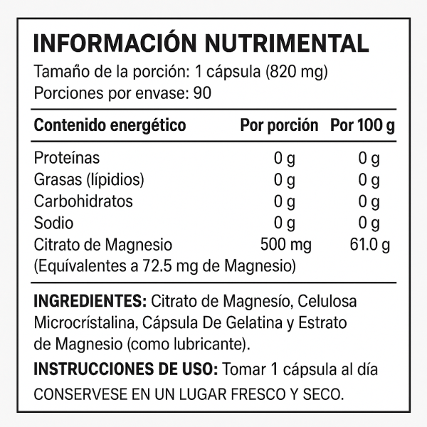 El Citrato de Magnesio es una de las formas más eficaces de este mineral, gracias a su alta biodisponibilidad, lo que significa que se absorbe fácil y eficazmente en el tracto digestivo.