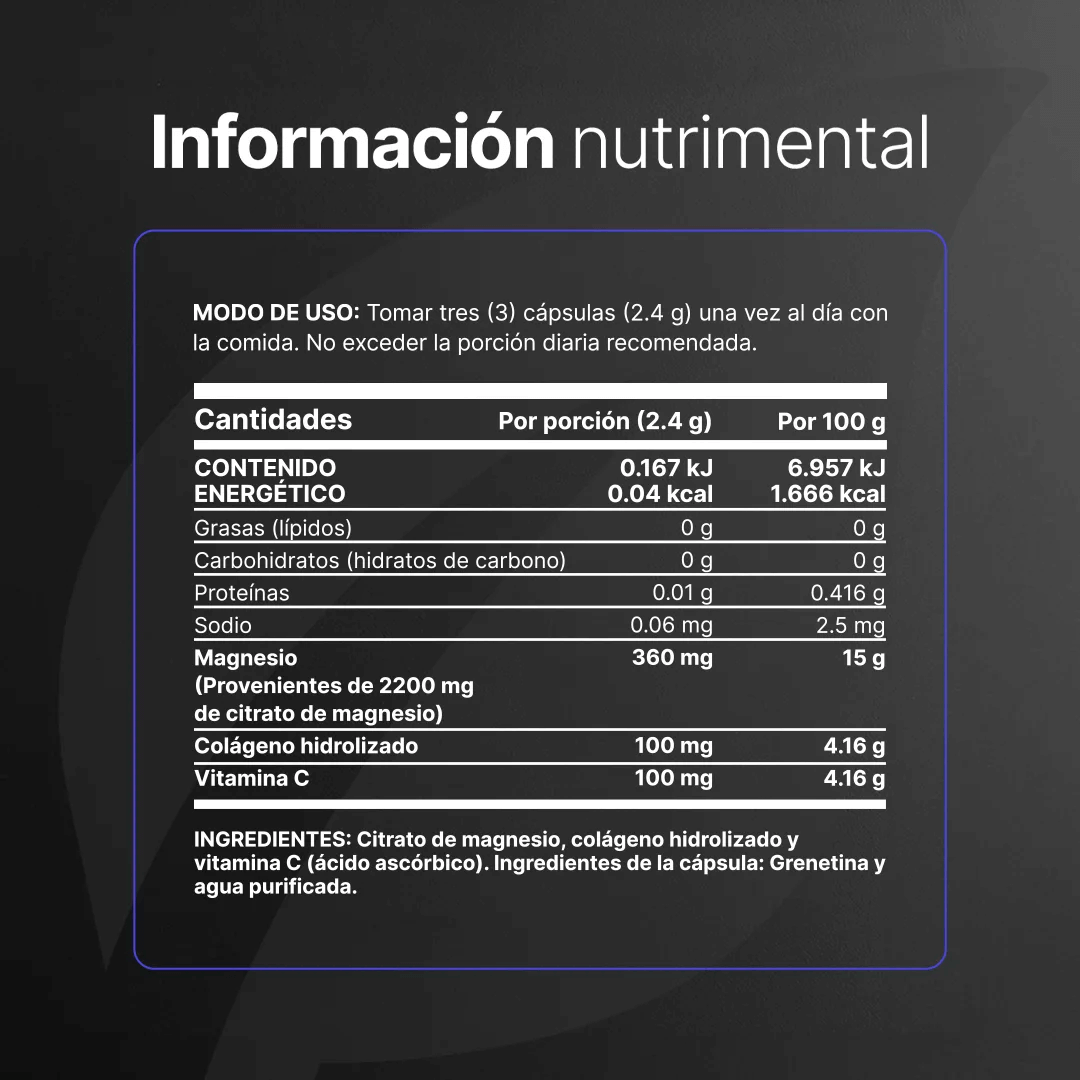 El Citrato de Magnesio es una de las formas más eficaces de este mineral, gracias a su alta biodisponibilidad, lo que significa que se absorbe fácil y eficazmente en el tracto digestivo.