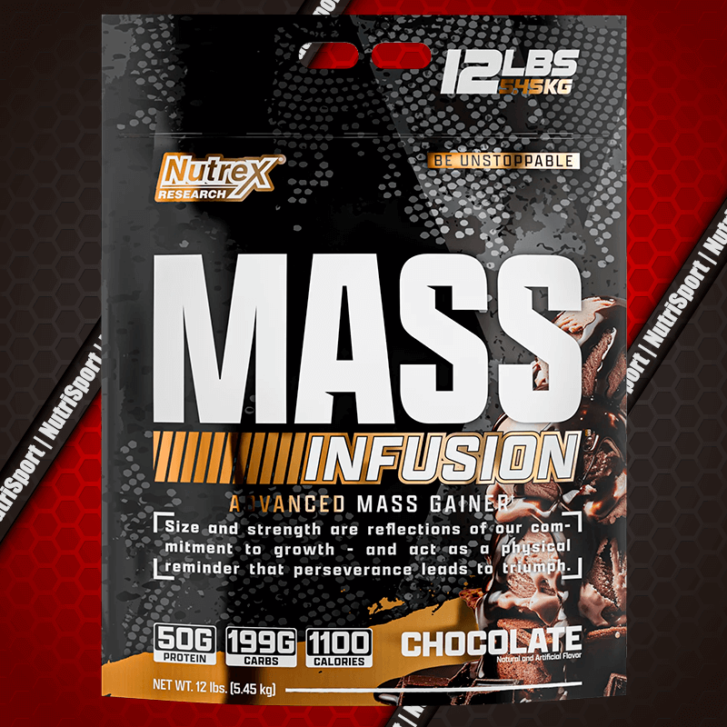 Mass Infusion es un Mass Gainer de Nutrex, cada uno de sus 19 servicios (4 scoops) te proporcionan: 50g de una mezcla de 3 tipos de Proteína, 1,100 Calorías, 200g de Carbohidratos, 12g de Grasa, 11g de BCAAs y 9g de Glutamina.