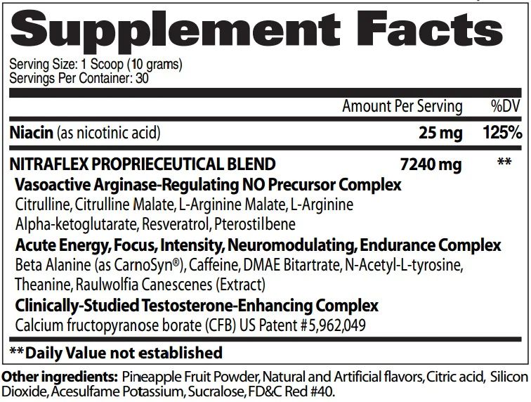 • Fuerza explosiva, precursor de testosterona, vascularización, energía intensa y un mejor rendimiento durante su entrenamiento. •