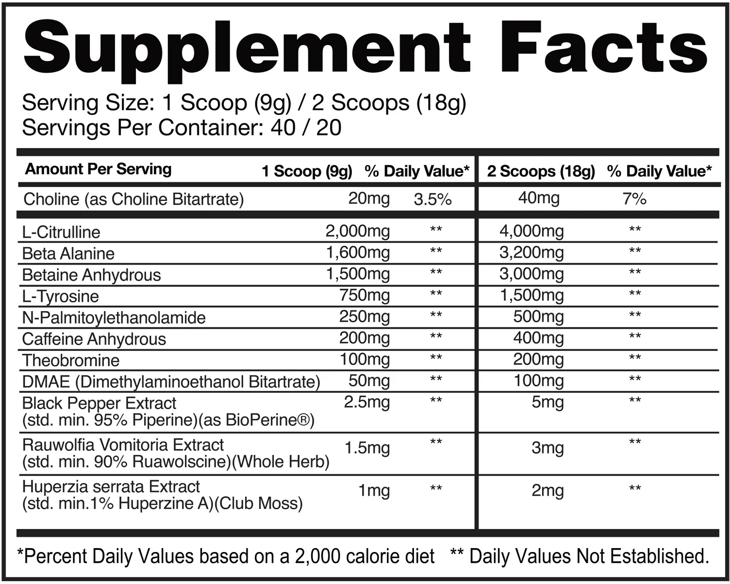 • Fuerza explosiva, bombeo muscular, vascularización, energía intensa y un mejor rendimiento durante su entrenamiento. •