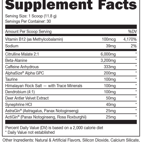 • Fuerza explosiva, vascularización, energía intensa y un mejor rendimiento durante su entrenamiento. •